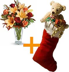 Calza Befana con lilium gialli, rose rosse e arancioni Vivaldi